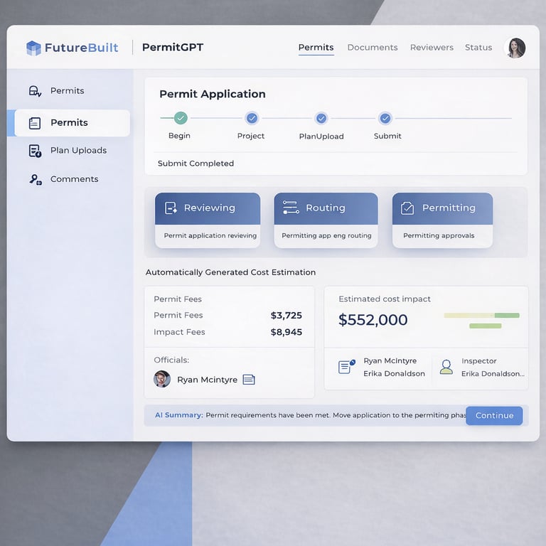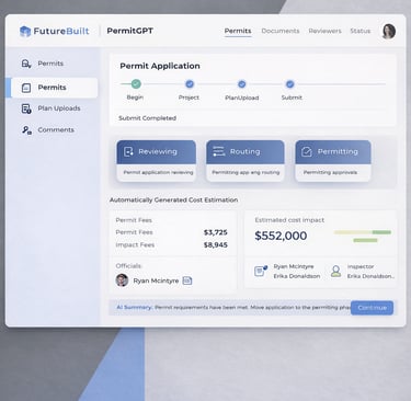 This stage is focused on transforming a proven vision into a functional, scalable platform — bringing AI-powered permitting, cost intelligence, and construction workflow automation into real-world use.